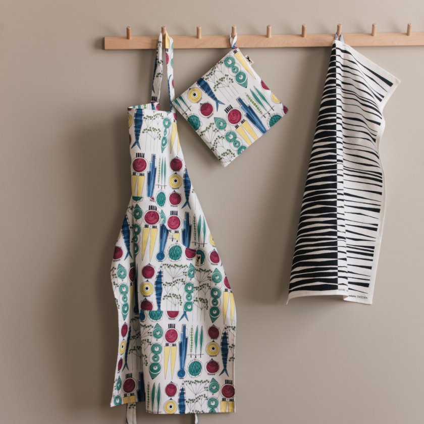 Our latest collection is the answer to many peoples desire for a smaller pattern. It cosists of Persons kryddskåp and Picknick apron, ovenglove and potholder.