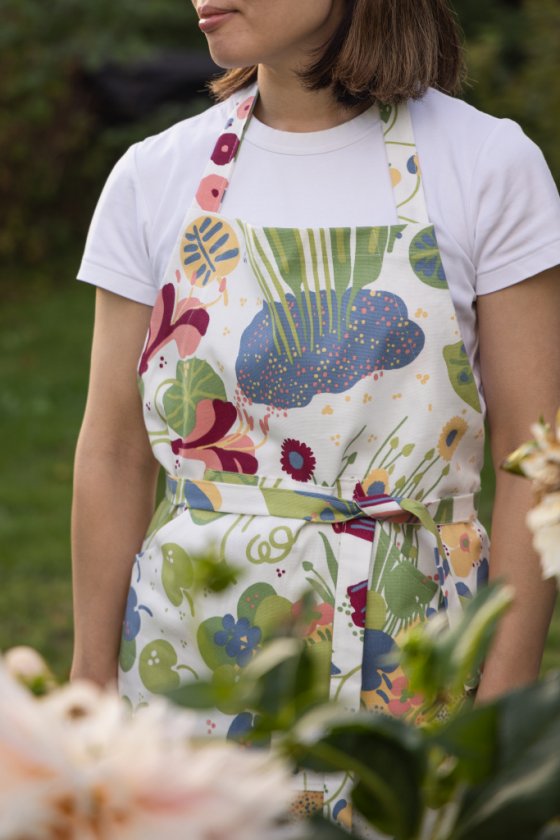 The stylised flowers spread out like a blooming summer meadow, creating a warm and inviting atmosphere. A pattern that works just as beautifully in urban interiors as in the countryside, and is especially well suited for table settings when you want to invite summer to the table.