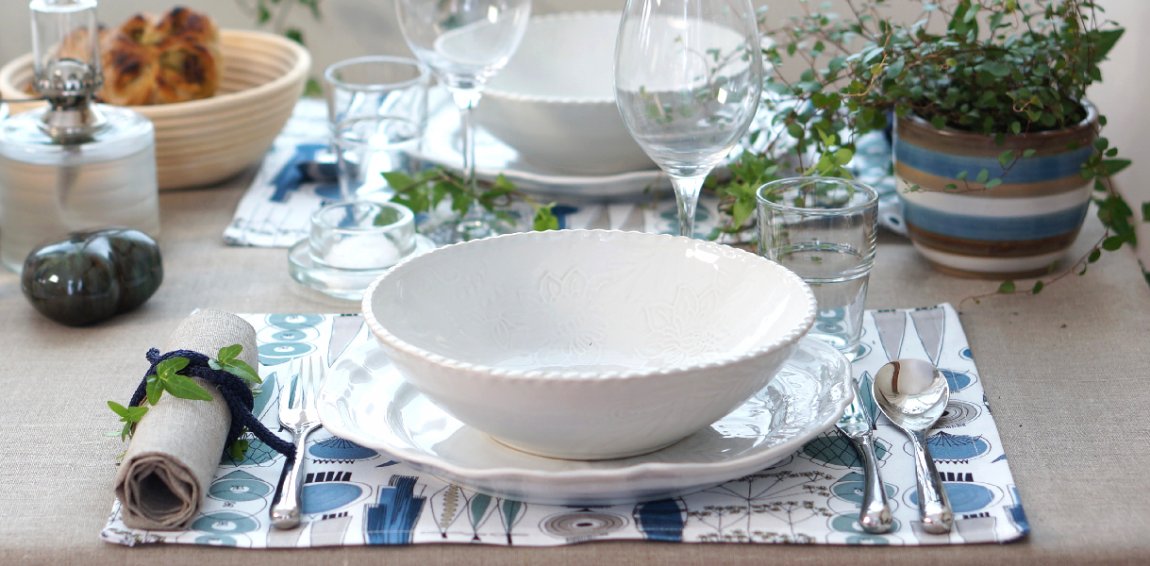 In times of trouble, we focus on our home and our loved ones. We fill our house with joy and peace, while at the same time we enjoy leaving it and spend time with others. Let the tablecloth Picknick blue beige be the main number in the table setting with it's lovely pattern and colors, where napkins in plain linen instead play the second fiddle. Picknick blue beige makes the table indoors, the balcony or the boat feel inviting and creates a cozy summer feeling.
