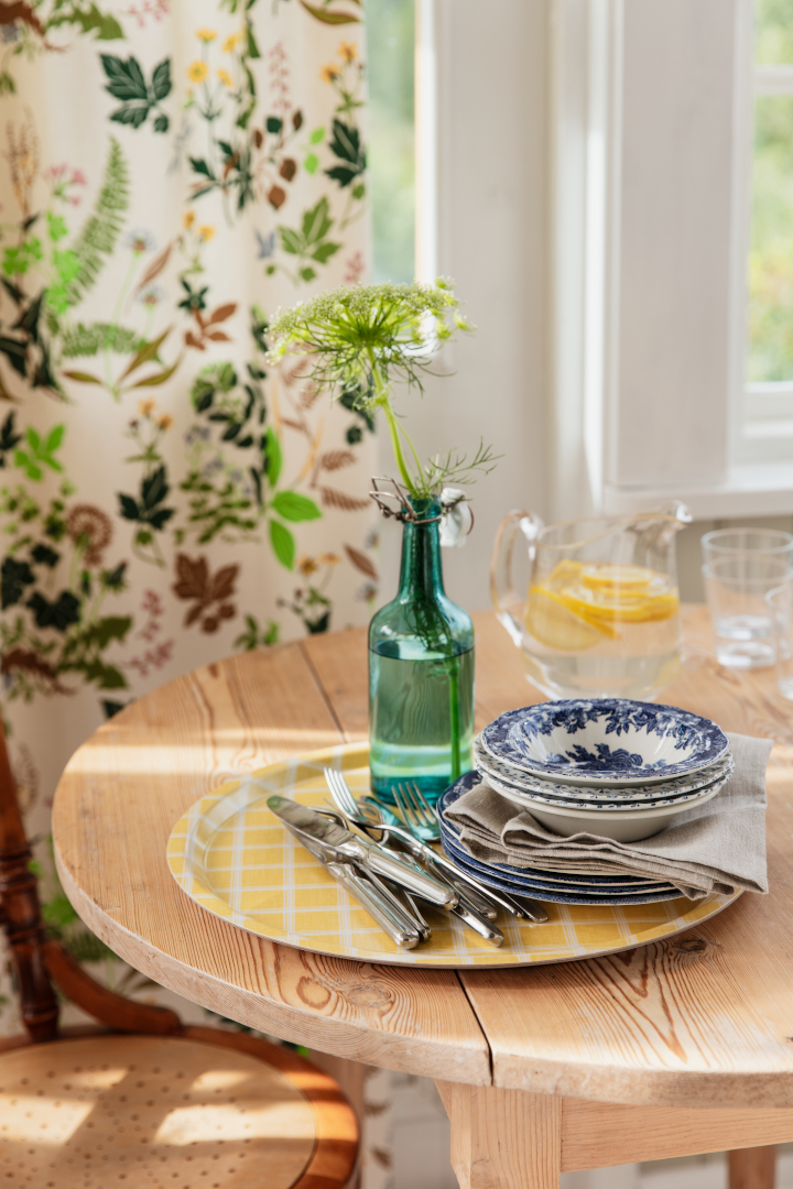 The Kristina Tray - featuring a classic grid in timeless colours. The hand-drawn and slightly uneven lines make it far more intriguing than if it had been perfectly digitally rendered. The beauty lies in its imperfections, allowing us to sense the presence of the human hand. The "Kristina" pattern is an original print from our archive, capturing the essence of craftsmanship and authenticity.