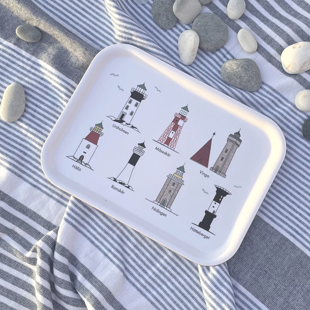 In the collection Svenska Fyrar we have fallen in love with rolling seas and shells. By the water we find blue and beige tones in a lovely mix that inspired us to create a longing west coast feeling and Swedish lighthouses.
