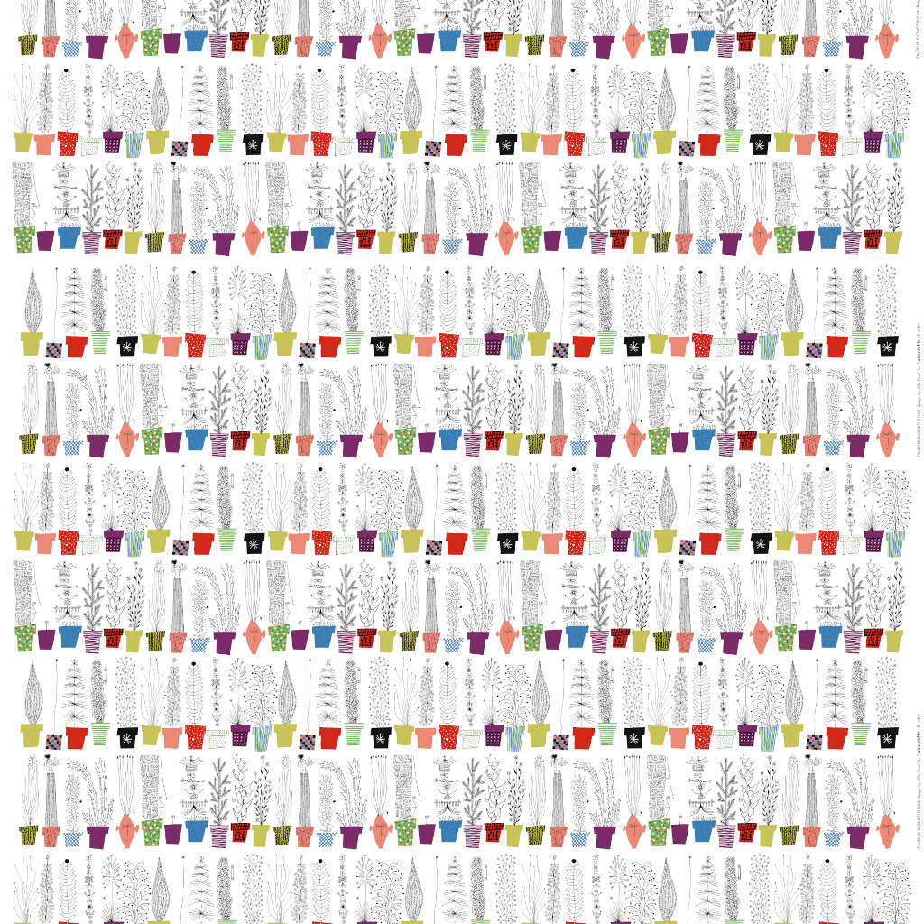 Italiensk blomsterhylla, fabric by the meter, 150 cm (Italian flower shelf, fabric by the metre, 150 cm). A playful and graphic pattern with a distinct character. Italiensk blomsterhylla, designed by Olle Eksell in the 1970s, features a vibrant composition where floral shapes take on a stylised, cheerful and humorous expression.