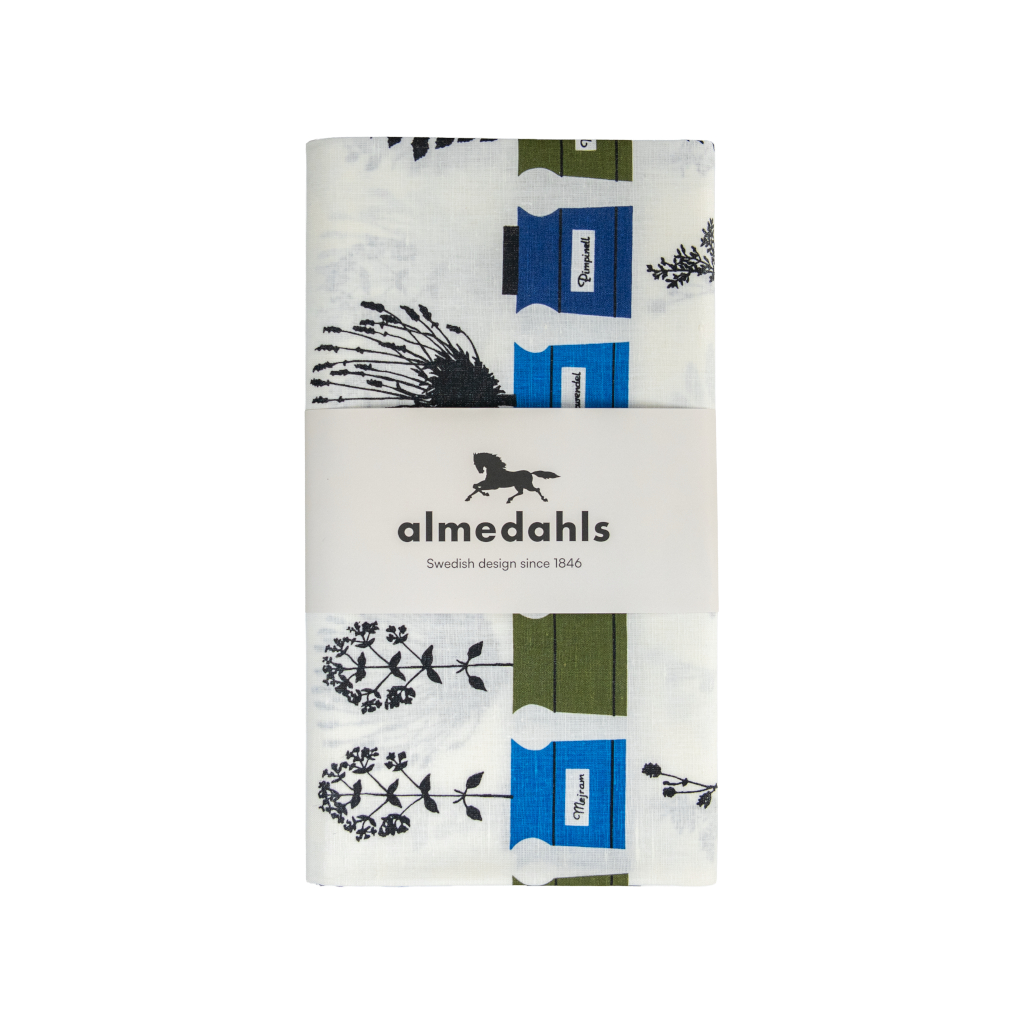 Persons kryddskåp (Person’s spice cupboard) is part of the Linnelinjen product line from 1955. Linnelinjen was developed for the H55 exhibition in Helsingborg and marked a new approach to household textiles. Everything didn’t have to remain as it always had been.