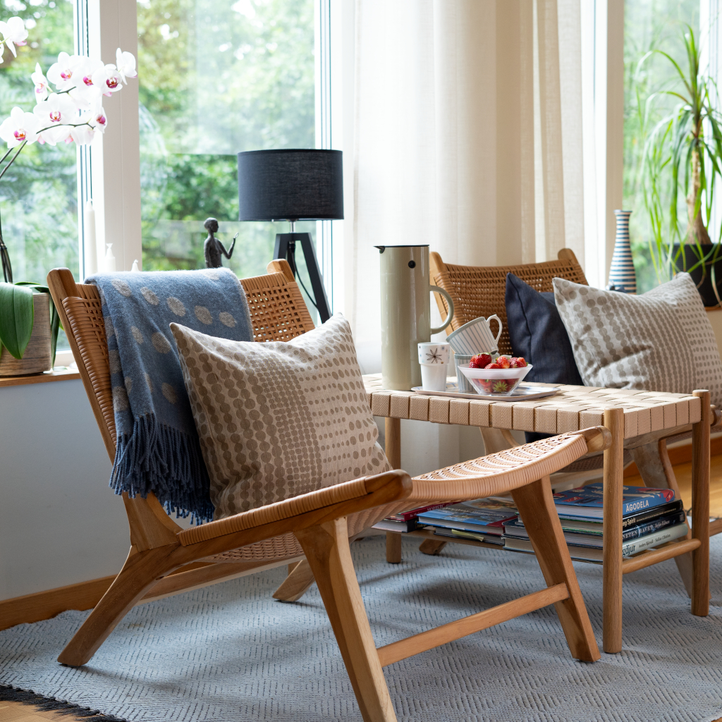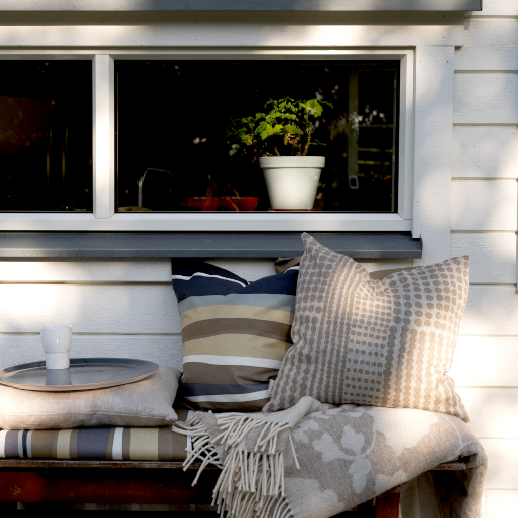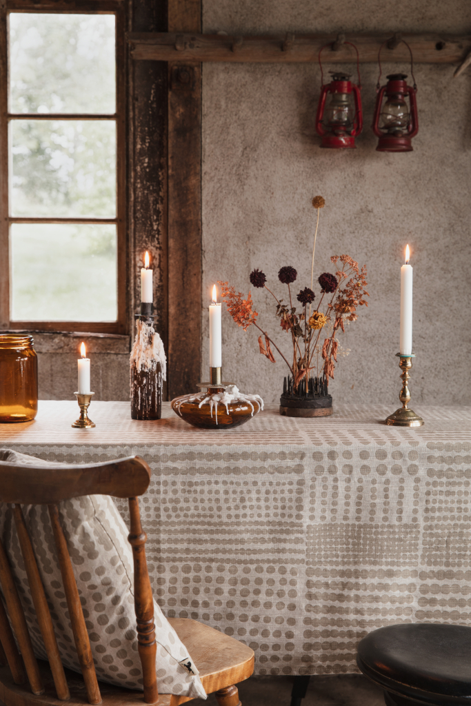 Pricktyg (Dot fabric) is characterized by a graphic simplicity where each dot is hand painted and placed with care. Pricktyg nature/taupe has a soft beige tone printed on unbleached linen fabric that has a lovely vibrant surface.