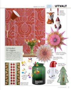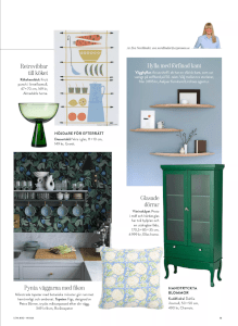 the Helsingborg Exhibition H55, which (among other things) signaled the start of “the Swedish textile revolution.” Actors such as NK’s Textile Chamber and Almedahls shed new light on both the home and domestic crafts, introducing groundbreaking patterns, explosive colors, and optimism for the future. Some of these patterns are still being produced today, among them Almedahls’ Persson’s Spice Cabinet, depicting Signe Persson-Melin’s spice jars and designed by Astrid Sampe.