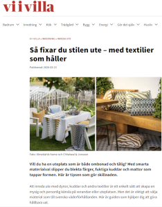 Decorating outdoor spaces with seat pads, cushions and other textiles is an easy way to create a warm and personal feel on your veranda or patio. But it’s important to choose materials that can withstand the Scandinavian climate. Here’s a guide to help you make long-lasting choices.