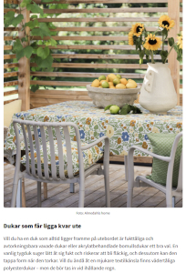 Price as tablecloth, size 145 × 250 cm, 1,000 SEK, and as fabric by the metre, 349 SEK/m.