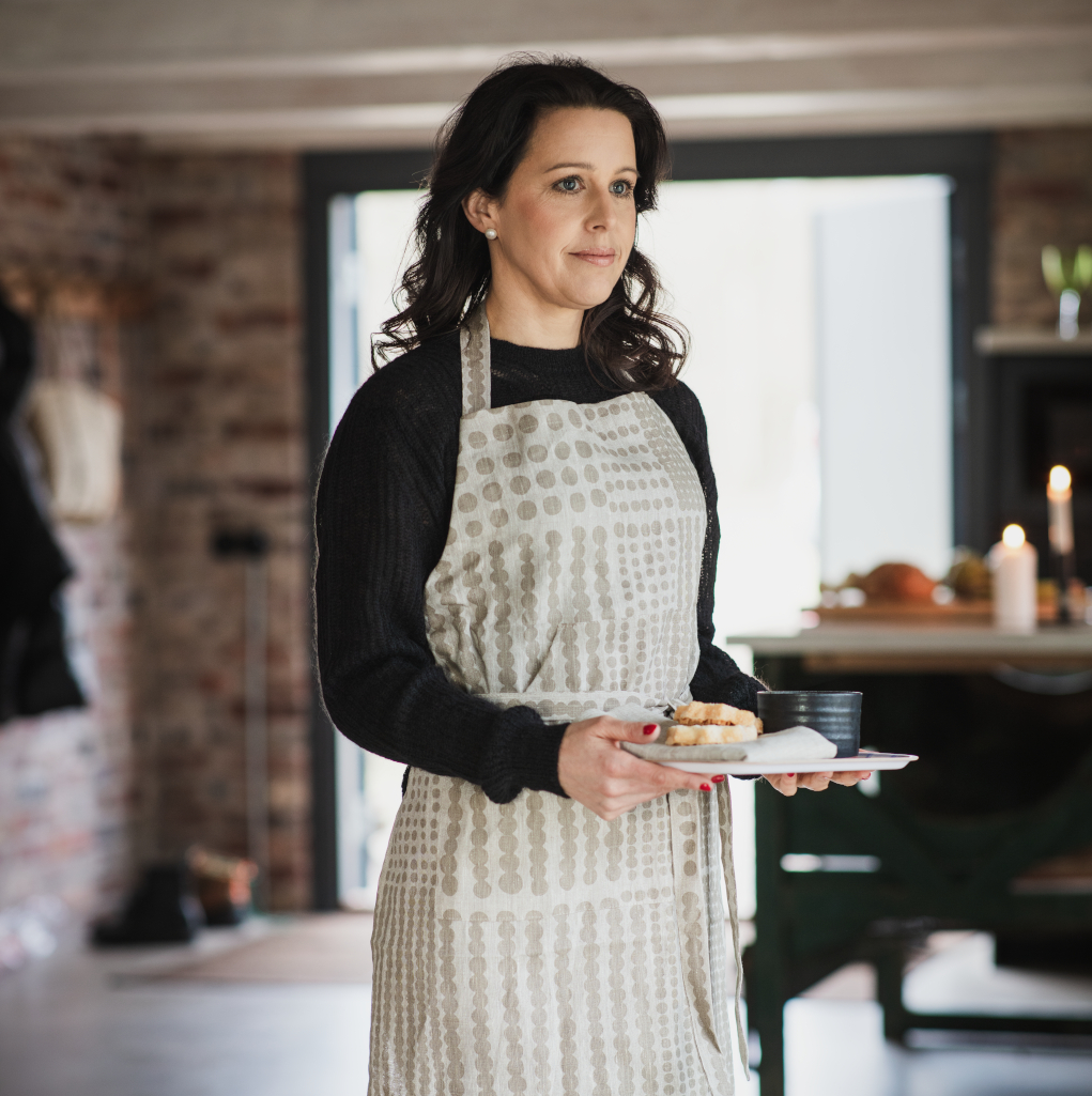 Pricktyg (Dot fabric) is characterized by a graphic simplicity where each dot is hand painted and placed with care. Pricktyg nature/taupe has a soft beige tone printed on unbleached linen fabric that has a lovely vibrant surface.